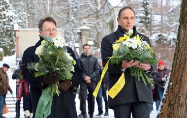 Sowohl Christian Dressel legte im Namen der Stadt ein Blumengebinde nieder, als auch der Landrat Robert Sesselmann, die einzelnen Stadtratsfraktionen, Vertreter der Institutionen sowie etliche Privatpersonen, die an der Gedenkfeier der Stadt Sonneberg am Neuen Denkmal auf dem Hauptfriedhof teilnahmen.