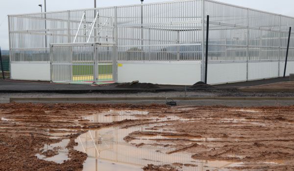 Bis es soweit ist, müssen sich Interessierte, Sportfans und Spielplatznutzer noch in Geduld üben. Denn nicht nur das Wetter, sondern auch die Unvernunft einiger Leute trägt derzeit dazu bei, dass der Einweihungstermin immer weiter in die Ferne rückt. Beinahe täglich müssen die Spuren derjenigen beseitigt werden, die das Jugendareal bereits jetzt unerlaubt nutzen, durch frisch angesäten Mutterboden stampfen und den witterungsbedingten Dreck auf die nagelneuen Spielgeräte tragen. Zusätzlich ist durch das nasskalte Wetter das Erdreich so stark aufgeweicht, dass sich verschiedene Stabilisierungsmaßnahmen für einzelne, vorgesehene Elemente deutlich verzögern.