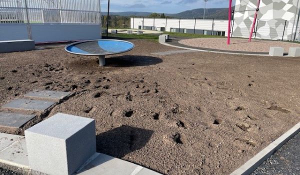 Doch noch ist das Kinder- und Jugend-Freizeitareal eine Baustelle und deshalb zu Recht für den Publikumsverkehr geschlossen und eingezäunt. Weiterhin sind Tiefbauarbeiten mit dem Bagger für den sogenannten Pumptrack (künstlich angelegter Rundkurs mit Steilkurven und Wellen für Mountainbiker) im Gange, wird Mutterboden aufgeschüttet, glattgezogen und mit Grassamen angesät, Borde werden gesetzt und Wege gepflastert. Eine Boulder-Wand soll in den nächsten Wochen noch entstehen. Erst, wenn alles wirklich fertig ist, kann der TÜV die Anlage abnehmen.