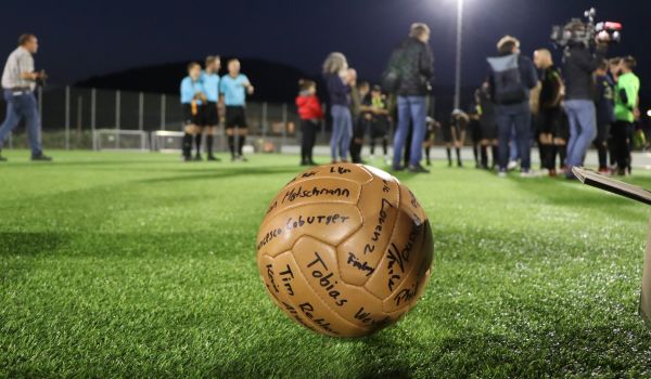 Die Zuschauer erlebten nicht nur ein Remis mit acht Toren und eine faire Partie auf dem Kunstrasenplatz im Sonneberger Stadion, sondern konnten sich auch mit historischen Informationen oder mit Bratwurst, Eis und Getränken versorgen. Die Kreissportjugend Sonneberg sorgte mit Torwandschießen, Tischkickern und Hüpfburg für die jüngsten Besucher. Für eine Spendenaktion der Stiftung für krebskranke Kinder Coburg, die sich ebenso in der Sonneberger Region engagiert, kamen insgesamt 470 Euro zusammen. Auch einer der historischen Fußbälle mit allen Spielerunterschriften wurde für den guten Zweck versteigert.
