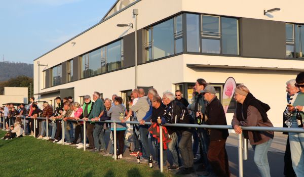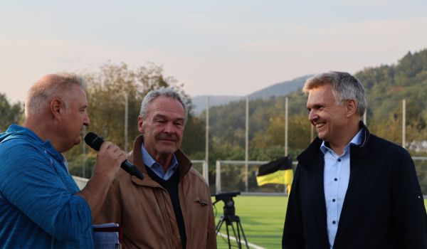Zum Ehrenanstoß wurden zwei Nachfahren der damaligen Spielergeneration gewürdigt – Dieter Althans (Sonneberg und Sohn von Fußballer Günter Althans) sowie Erich Bauer (Neustadt und Sohn von Fußballer Atze Bauer) standen zum Anpfiff der Partie bei bestem Spätsommerwetter im Rampenlicht.