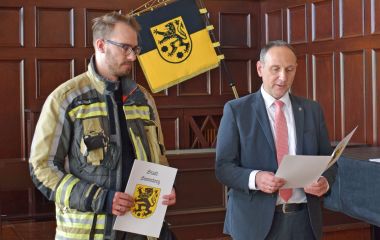 Weiterhin wurde bereits mit Wirkung zum 28. Februar 2025 Kamerad Martin Raupach zum Zugführer der Freiwilligen Feuerwehr Sonneberg bestellt. Dies trifft ebenfalls für Kamerad Marcel Kania zu, der außerdem noch zum Oberlöschmeister befördert wurde.