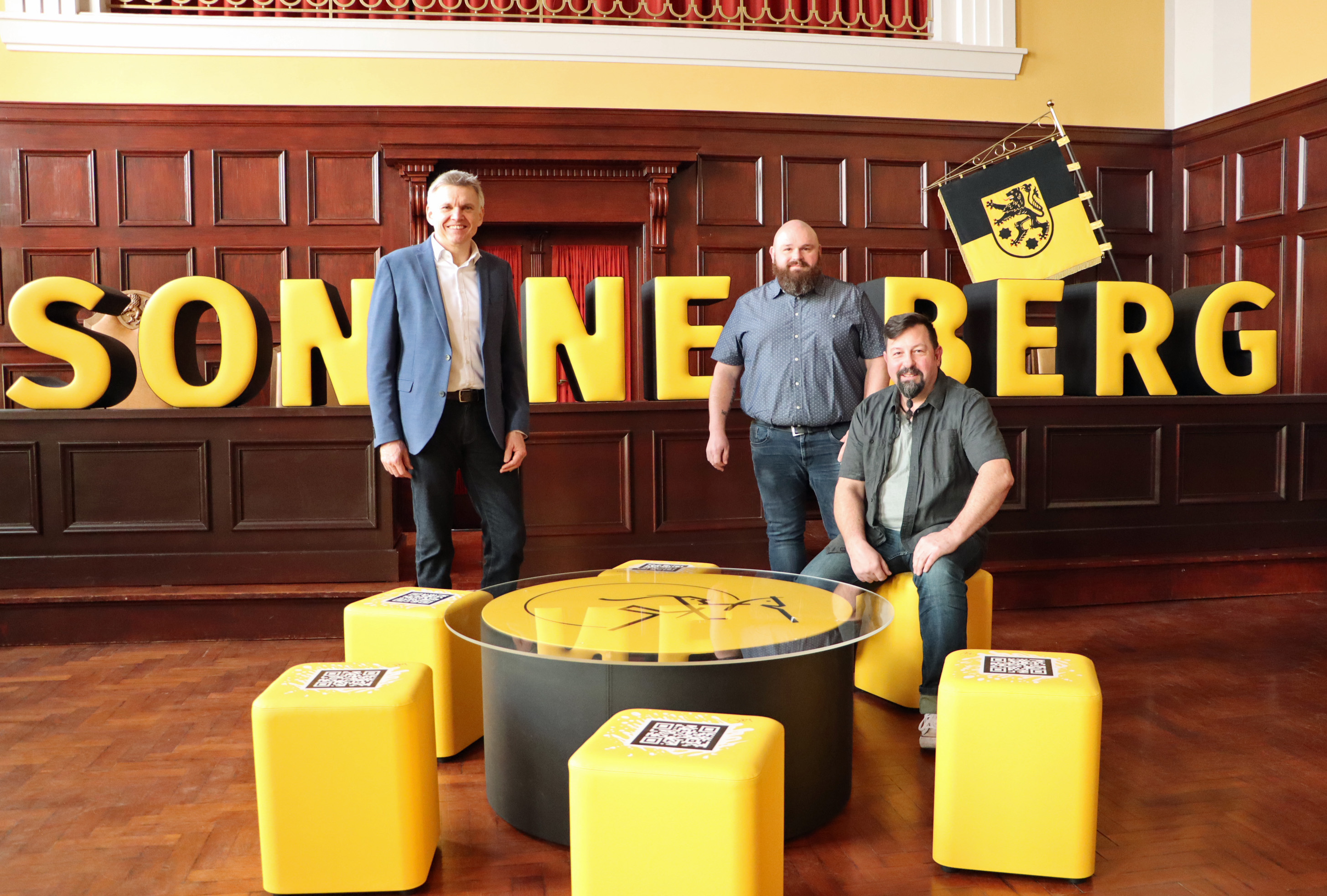 Flexibel zu bleiben, kreative Ideen zu entwickeln und sich den Bedingungen auch als kleines Unternehmen anzupassen – das schätzt der Bürgermeister sehr. „Ich kann mir die Sachen gut im Foyer von Unternehmen, bei öffentlichen Veranstaltungen, Konferenzen und Messen vorstellen. Ebenso wichtig ist, dass sich Sonneberger Unternehmen zusammengetan haben und gemeinsam an einem Produkt arbeiten. Das bringt nicht nur Synergien, sondern es bleibt auch Wertschöpfung in Sonneberg“, so Dr. Heiko Voigt beim Vor-Ort-Termin im Sonneberger Rathaus.
