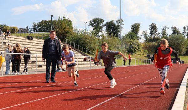 Ausgerufen waren wie immer der Pokal des Bürgermeisters für die Grundschulen und der Pokal des Landrates für die weiterführenden Schulen. Mit einem Pistolenschuss startete Dr. Heiko Voigt den Staffellauf der Grundschulen, bei dem sechs Mannschaften gegeneinander antraten. Das Podium eroberten mit einigem Vorsprung die Kinder der Grundschule „Geschwister Scholl“ vor den Oberlindern und den Mädchen und Jungen aus dem Wolkenrasen. Die weiteren Plätze belegten die Erst- bis Viertklässler der Grundschule Grube vor den Grundschulkindern der Goethe-Schule Schalkau und den Föritztalern.