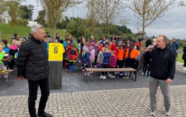 Bürgermeister Voigt tauschte nur Momente später das Mikrofon gegen die Startpistole und gab im Reinhard-Häfner-Sportfeld das Zeichen für den Staffellauf der Grundschulen. Sieben Mannschaften hatten sich eingefunden und wetteiferten um den Pokal des Bürgermeisters. In einem packenden Rennen setzten sich die Grundschüler aus Oberlind durch, die vor den Mädchen und Jungen der Grundschule Geschwister Scholl und vor den Föritztalern die Ziellinie überquerten. Die weiteren Platzierungen erreichten die Grundschulen Wolkenrasen, Grube, Schalkau und Rauenstein.