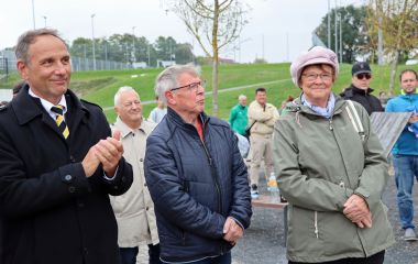 Bürgermeister Dr. Heiko Voigt bedankte sich bei den Initiatoren aus den Reihen des Stadtrates und des Kulturausschusses der letzten Legislatur, namentlich Hartmut Fiedler, Rolf Schwämmlein und Traudel Garg, die sich immer wieder für eine Würdigung des Ausnahmefußballers eingesetzt hatten. Nach der Benennung des Stadionkessels in Reinhard-Häfner-Sportfeld ist dies nun der zweite Schritt der Würdigung.