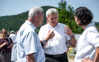 Sonnebergs Bürgermeister Dr. Heiko Voigt betonte in seinem Redebeitrag die wirtschaftliche und strategische Bedeutung des entstehenden Industriegebietes: „Heute setzen wir den etwas anderen Spatenstich und geben damit ein Versprechen für die wirtschaftliche Zukunft unserer Stadt und unserer gesamten Region.“ Dies konnte der Hauptgeschäftsführer der IHK Südthüringen Dr. Ralf Pieterwas nur unterstreichen: Er nannte die Erschließung eine „verdammt große Hausnummer“. „Dieses Industriegebiet wird Sogwirkung haben für Hoch- und Zukunftstechnologien, soll aber auch den gesamten Wirtschaftsraum erfassen. Der Ruf nach Fläche wird eines Tages alles überstrahlen“, prognostizierte Pieterwas.