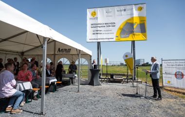 Zahlreiche Vertreterinnen und Vertreter aus Politik, Wirtschaft, Planung und Verwaltung kamen auf Einladung der Stadt am frühen Nachmittag an Ort und Stelle zusammen, um diesen Meilenstein zu feiern – darunter auch Thüringens Wirtschaftsministerin Colette Boos-John. Sie dankte in einer kleinen Ansprache „allen, die den Mut gehabt haben, dieses Projekt durchzuboxen“.