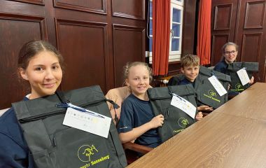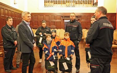 Einige Kinder durften dann direkt im Rathaus ihren „Feuerwehr-Rucksack“ in Empfang nehmen. Er bietet viel Stauraum, ist robust und vielseitig einsetzbar – und vor allem soll er das Gemeinschafts- und Zugehörigkeitsgefühl der Kinder und Jugendlichen zur Feuerwehr stärken. Über insgesamt 150 Rucksäcke dürfen sich die Jugendwarte der Wehren im Stadtgebiet und letztlich der Nachwuchs freuen. Als Weihnachtsgeschenk der Stadt Sonneberg werden sie zeitnah von ihren Betreuern überreicht.