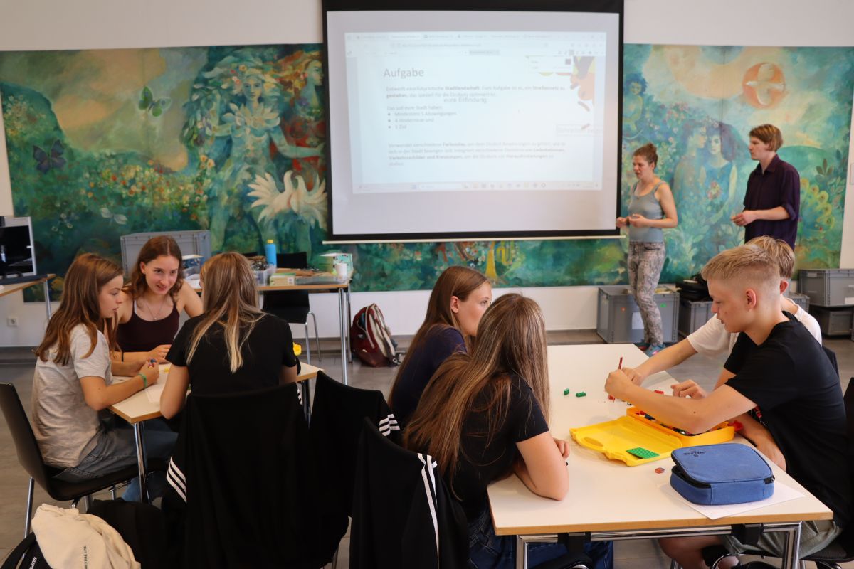 Die Frage „Wie wollen wir leben?“ steht dabei immer im Fokus und lädt dazu ein, die eigenen Zukunftsvorstellungen zu formulieren und darzustellen. Die Workshops fördern dadurch ein Verständnis für die Vielzahl möglicher Zukünfte und stärken durch einen handlungsorientierten Ansatz zugleich die Fähigkeiten zur kreativen Problemlösung und zum Aushandeln verschiedener Zukunftsentwürfe.
