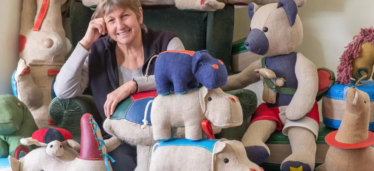 Renate Müller ist eine bekannte deutsche Spielzeugdesignerin, die vor allem für ihre handgefertigten Tiere aus Jute und Leder berühmt ist. Sie entwarf Elefanten, Löwen und andere Tiere, die nicht nur zum Spielen gedacht waren, sondern auch Kindern in Therapien helfen sollten – zum Beispiel, um ihre Bewegungen oder Sinne zu trainieren.