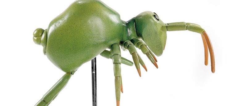 Hier siehst du das SOMSO-Modell eines Springschwanzes (Sminthurus viridis L., nach Dr. E. Schicha) im vergrößertem Maßstab 1:90.