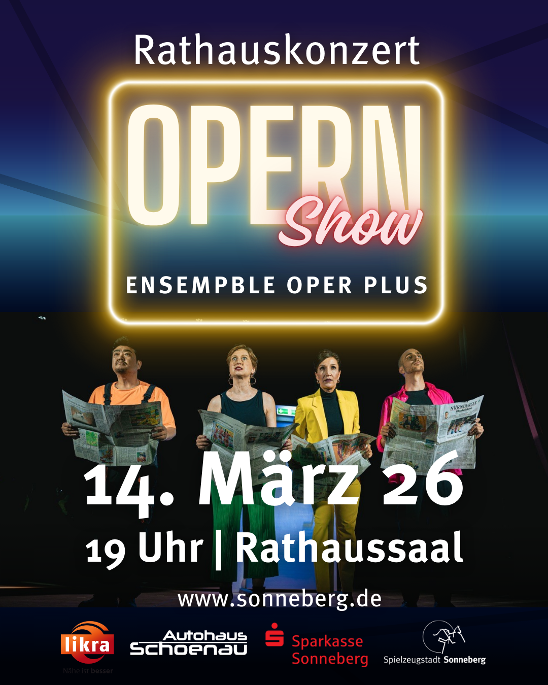 Das Ensemble OPER PLUS ist ein professionelles Musiker-Ensemble aus der Metropolregion Nürnberg, das klassische Musik und Oper auf neue, unmittelbare Weise erlebbar macht. Mit frischen, emotionalen Musiktheaterformaten bringt das Ensemble Oper und Musiktheater an ungewöhnliche Orte – vom Theater über Wohnzimmer bis zum Open-Air – und richtet sich sowohl an Opernkenner als auch an Neulinge. Ihr Ansatz verbindet große Stimmen und starke Geschichten mit einer offenen, entdeckungsfreudigen Spielweise, die klassische Musik überraschend nahbar und lebendig macht.