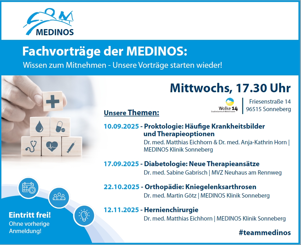 Die beliebte Reihe wird mit einem weiteren interessanten Vortrag fortgesetzt. Diesmal wird Herr Dr. med. Matthias Eichhorn über das Thema "Hernienchirurgie" aufklären. Interessierte sind herzlich in die Wolke 14 eingeladen.