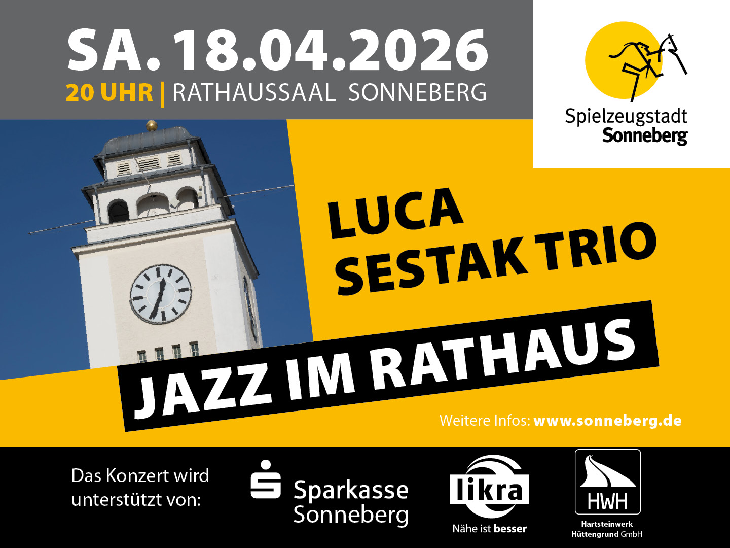 Am Samstag, 18. April 2026, heißt es um 20 Uhr wieder „Jazz im Rathaus“ in der Spielzeugstadt. Zur neunten Ausgabe der Konzertreihe ist mit dem Luca Sestak Trio einer der spannendsten Acts der jungen europäischen Jazzszene zu Gast.
